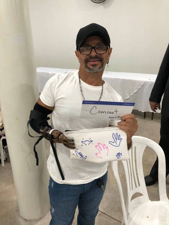 Projeto Mãos Solidárias. Doação de protese por a beneficiado captado pelo Club que teve sua mão amputada durante o trabalho. Melhora qualidade de vida, resgate de dignidade e alto estima, beneficiários conseguem realizar tarefas sozinhos que sem a prótese não seria possível.